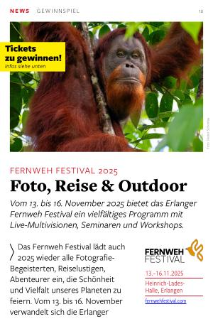 Das Fernweh Festival lädt auch 2025 wieder alle Fotografie- Begeisterten, Reiselustigen, Abenteurer ein, die Schönheit und Vielfalt unseres Planeten zu feiern. Vom 13. bis 16. November verwandelt sich die Erlanger Heinrich-Lades-Halle in eine bunte Bühne für Fernweh, Outdoor-Erlebnisse und beeindruckende Bildwelten. Dich erwartet ein Wochenende voller faszinierender Live-Multivisionen, spannender Seminare und praxisorientierter Workshops.