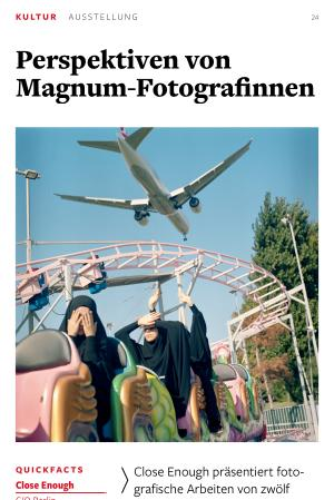 Close Enough präsentiert fotografische Arbeiten von zwölf Fotografinnen der renommierten Agentur Magnum Photos. Die Ausstellung wurde 2022 am International Center of Photography in New York anlässlich des 75-jährigen Bestehens der Agentur erstmals gezeigt. Zum 25. Geburtstag von C / O Berlin wird die Ausstellung in einer konzeptionell adaptierten und erweiterten Version in Berlin präsentiert. Was die gezeigten Positionen verbindet, ist die Auseinandersetzung mit der Beziehung und der Nähe zwischen den Fotografinnen und ihren Motiven.