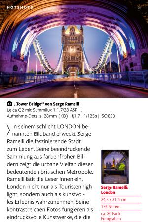 In seinem schlicht LONDON benannten Bildband erweckt Serge Ramelli die faszinierende Stadt zum Leben. Seine beeindruckende Sammlung aus farbenfrohen Bildern zeigt die urbane Vielfalt dieser bedeutenden britischen Metropole. Ramelli lädt die Leser: innen ein, London nicht nur als Touristenhighlight, sondern auch als kunstvolles Erlebnis wahrzunehmen. Seine kontrastreichen Fotos fungieren als eindrucksvolle Kunstwerke, die die Essenz dieser sonst so pulsierenden Stadt perfekt einfangen.