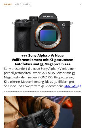 +++ Sony Alpha 7 V: Neue Vollformatkamera mit KI-gestütztem Autofokus und 33 Megapixeln +++