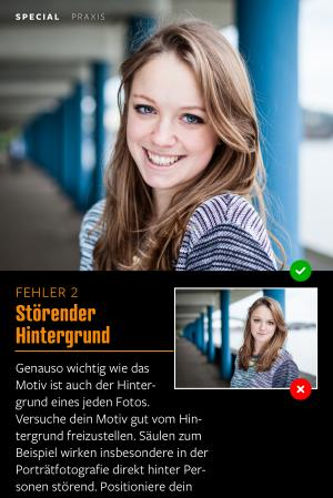 Genauso wichtig wie das Motiv ist auch der Hintergrund eines jeden Fotos. Versuche dein Motiv gut vom Hintergrund freizustellen. Säulen zum Beispiel wirken insbesondere in der Porträtfotografie direkt hinter Personen störend. Positioniere dein Fotomodell so, dass ihm die Säule nicht „ aus dem Kopf wächst“.
