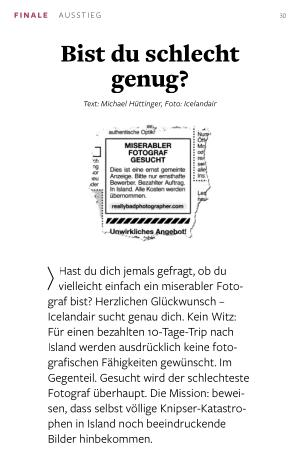 Hast du dich jemals gefragt, ob du vielleicht einfach ein miserabler Fotograf bist? Herzlichen Glückwunsch – Icelandair sucht genau dich. Kein Witz: Für einen bezahlten 10-Tage-Trip nach Island werden ausdrücklich keine fotografischen Fähigkeiten gewünscht. Im Gegenteil. Gesucht wird der schlechteste Fotograf überhaupt. Die Mission: beweisen, dass selbst völlige Knipser-Katastrophen in Island noch beeindruckende Bilder hinbekommen.