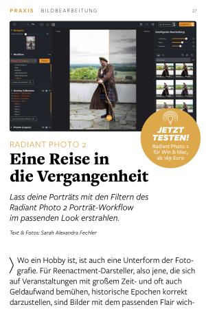 Wo ein Hobby ist, ist auch eine Unterform der Fotografie. Für Reenactment-Darsteller, also jene, die sich auf Veranstaltungen mit großem Zeit- und oft auch Geldaufwand bemühen, historische Epochen korrekt darzustellen, sind Bilder mit dem passenden Flair wichtig. Das heißt nicht nur, dass am besten gar nichts Neumodisches im Bild zu sehen sein soll, sondern auch der Bildlook darf gern an vergangene Zeiten( oder moderne Historien-Filme) erinnern. Radiant Photo 2 bietet hier mit seinen zahlreichen Presets einige Möglichkeiten, eine langwierige Bildbearbeitung abzukürzen.