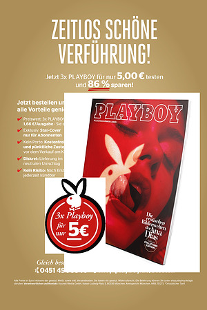 Jetzt 3x PLAYBOY für nur 5,00 € testen und 86 % sparen!