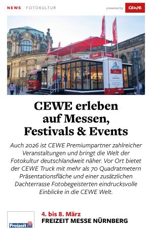 Auch 2026 ist CEWE Premiumpartner zahlreicher Veranstaltungen und bringt die Welt der Fotokultur deutschlandweit näher. Vor Ort bietet der CEWE Truck mit mehr als 70 Quadratmetern Präsentationsfläche und einer zusätzlichen Dachterrasse Fotobegeisterten eindrucksvolle Einblicke in die CEWE Welt.