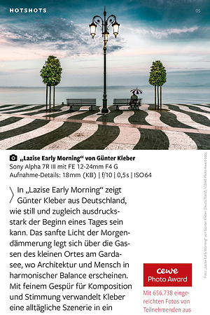 Mit feinem Gespür für Komposition und Stimmung verwandelt Kleber eine alltägliche Szenerie in ein poetisches Bild von Ruhe und Klarheit. Für diese atmosphärische Aufnahme wurde er mit dem CEWE Photo Award 2025 in der Kategorie „ Reise & Kultur“ ausgezeichnet.