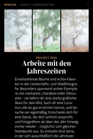 Einzelstehende Bäume sind echte Klassiker in der Landschafts- und Waldfotografie. Besonders spannend wirken Exemplare mit markanter, charaktervoller Silhouette – sie liefern dir eine starke grafische Basis für dein Bild. Such dir eine Location, die du gut erreichen kannst, und besuche sie regelmäßig. Entscheide dich für eine Szene, die dich wirklich anspricht, und fotografiere sie über das Jahr hinweg immer wieder – möglichst vom gleichen Standpunkt aus. So entsteht eine Serie, in der sich ausschließlich die Jahreszeiten verändern. Für eine konsistente Bildwirkung behältst du – mit Ausnahme der Verschlusszeit – alle Kameraeinstellungen bei. Achte außerdem genau auf Wetter und Lichtstimmung, denn sie prägen den Charakter jeder Aufnahme entscheidend. Das Ziel dieser Serie: den Baum in allen vier Jahreszeiten festhalten – als finalen Abschluss im Schnee.