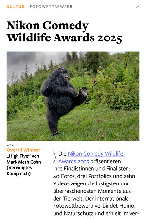 Mit humorvollen Bildern macht er nicht nur gute Laune, sondern lenkt zugleich Aufmerksamkeit auf den Schutz und Erhalt unserer Natur. Denn auch in diesem Jahr unterstützen die Nikon Comedy Wildlife