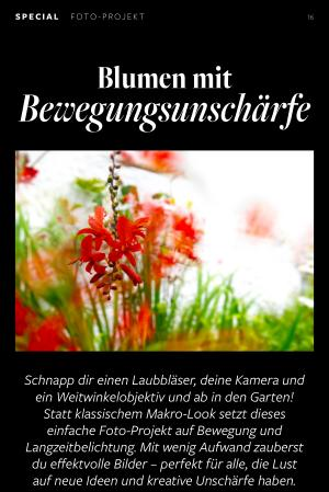 Schnapp dir einen Laubbläser, deine Kamera und ein Weitwinkelobjektiv und ab in den Garten! Statt klassischem Makro-Look setzt dieses einfache Foto-Projekt auf Bewegung und Langzeitbelichtung. Mit wenig Aufwand zauberst du effektvolle Bilder – perfekt für alle, die Lust auf neue Ideen und kreative Unschärfe haben.