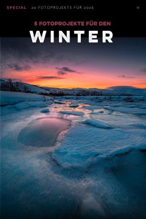Auf weiße Weihnachten zu hoffen ist vielleicht optimistisch, doch im Januar steigen die Chancen, eine Landschaft mit einer Schneedecke zu erleben. Schon davor sorgen kalte Nächte für zugefrorene Seen, Raureif auf Pflanzen und gelegentlich auch auf Bäumen. Eine winterliche Landschaft wirkt fotografisch völlig anders als im Sommer – also zieh dich warm an und geh hinaus, um zu entdecken, was sich finden lässt.