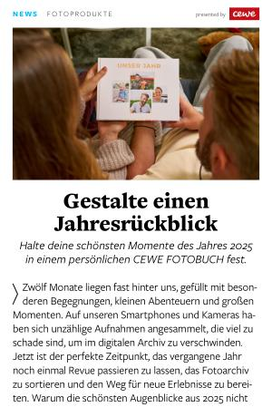 Zwölf Monate liegen fast hinter uns, gefüllt mit besonderen Begegnungen, kleinen Abenteuern und großen Momenten. Auf unseren Smartphones und Kameras haben sich unzählige Aufnahmen angesammelt, die viel zu schade sind, um im digitalen Archiv zu verschwinden. Jetzt ist der perfekte Zeitpunkt, das vergangene Jahr noch einmal Revue passieren zu lassen, das Fotoarchiv zu sortieren und den Weg für neue Erlebnisse zu bereiten. Warum die schönsten Augenblicke aus 2025 nicht in einem CEWE FOTOBUCH festhalten? So entsteht ein persönlicher Jahresrückblick, in dem alle Highlights – von Reisen über Gartenmomente bis hin zu spontanen Schnappschüssen – ihren eigenen Platz bekommen.