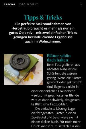Tipps & Tricks Für perfekte Makroaufnahmen von Herbstlaub braucht es mehr als nur ein gutes Objektiv – mit zwei einfachen Tricks gelingen beeindruckende Ergebnisse auch im Wohnzimmer.
