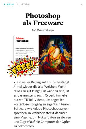 Ein neuer Betrug auf TikTok bestätigt mal wieder die alte Weisheit: Wenn etwas zu gut klingt, um wahr zu sein, ist es das meistens auch. Cyberkriminelle nutzen TikTok-Videos, um angeblich kostenlosen Zugang zu eigentlich teurer Software wie Adobe Photoshop zu versprechen. In Wahrheit steckt dahinter eine Masche, um Nutzerdaten zu stehlen und Zugriff auf die Computer der Opfer zu bekommen.