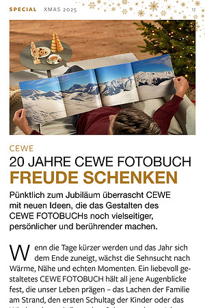 W enn die Tage kürzer werden und das Jahr sich dem Ende zuneigt, wächst die Sehnsucht nach Wärme, Nähe und echten Momenten. Ein liebevoll gestaltetes CEWE FOTOBUCH hält all jene Augenblicke fest, die unser Leben prägen – das Lachen der Familie am Strand, den ersten Schultag der Kinder oder das Wiedersehen mit Freunden. Seit nunmehr 20 Jahren begleitet das CEWE FOTOBUCH Millionen Menschen dabei, ihre Erinnerungen lebendig zu bewahren – nicht digital im Handy oder in der Cloud, sondern im echten Leben, zum Anfassen und Durchblättern.
