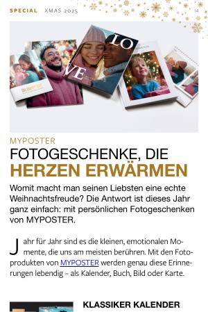 J ahr für Jahr sind es die kleinen, emotionalen Momente, die uns am meisten berühren. Mit den Foto- produkten von MYPOSTER werden genau diese Erinnerungen lebendig – als Kalender, Buch, Bild oder Karte.