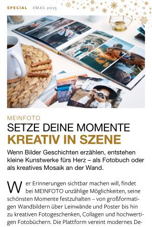 GESCHENKE, DIE BLEIBEN Ob als MixPix ®-Galerie im Wohnzimmer oder als Fotobuch unter dem Weihnachtsbaum – MEINFOTO macht Schenken persönlich. Denn echte Freude entsteht, wenn Erinnerungen sichtbar werden: in Bildern, die Geschichten erzählen und die man mit anderen teilt.